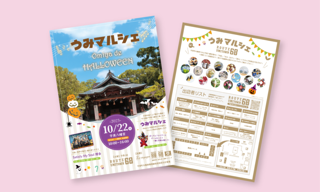 宇美68様よりご依頼いただき、うみマルシェ様のイベントチラシを制作させて頂きました。