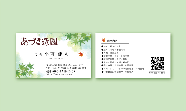 あづき造園様のお名刺を作成させていただきました。