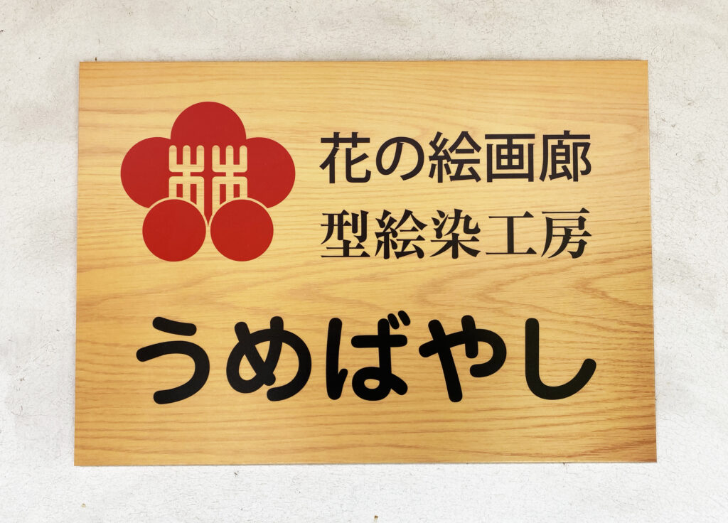 花の絵画廊 型絵染工房 うめばやし様の看板の制作をさせていただきました。