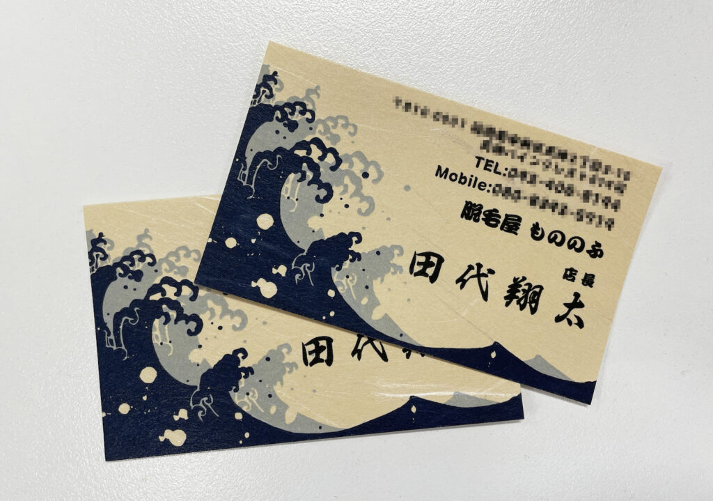 脱毛屋もののふ様のお名刺作成のお手伝いをさせていただきました。