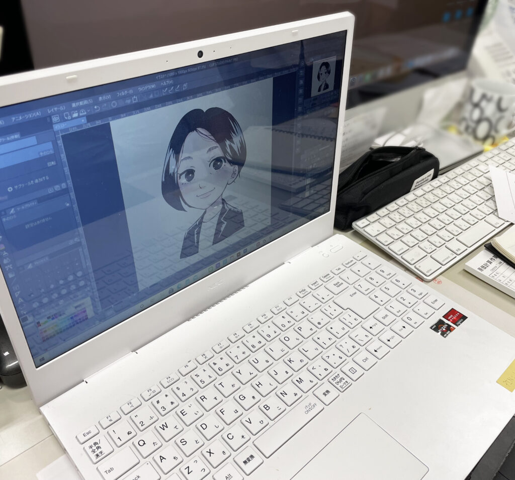 お客様より似顔絵イラストのお問い合わせがあり、サンプルでスタッフの顔をイラスト化しました。